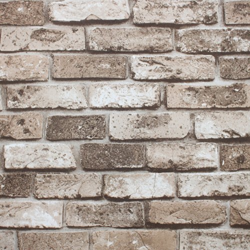 Briana faux brick wallpaper in beige and brown design by.